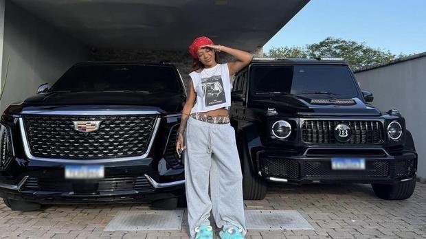 A funkeira posou com um Cadillac Escalade preto avaliado em cifras acima de dois milhões de reais e também surgiu ao lado de uma Mercedes Classe G, modelo bastante desejado entre apaixonados por máquinas luxuosas.