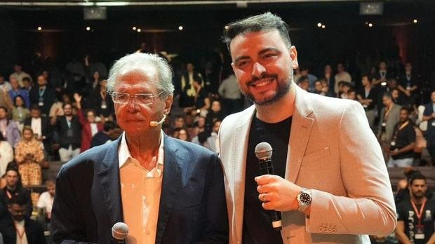 Durante o encontro, Guedes adotou tom crítico em sua fala, destacando os desafios da Economia brasileira, ao passo em que questionou a plateia sobre gastos públicos, inflação e juros. De forma irreverente, Souza presenteou o economista com chocolates artesanais e brincou que, “o ex-ministro poderia enxergar os negócios com um olhar mais doce". Bem-humorado, Guedes sugeriu que, “aos 75 anos, não deveria exagerar no açúcar”, e distribuiu o mimo para a plateia.