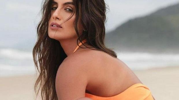 'Sol, areia e mar. Saudade', escreveu a namorada do cantor Thiaguinho na legenda da foto em que aparece de costas, com um olhar sedutor em Maresias.