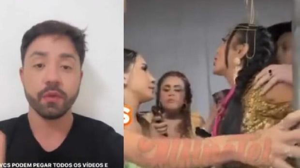 Já Dayanne gravou Stories momentos após o barraco, e disse que havia sido agredida pelo humorista. 'Gente, estava na minha no meu canto. E ele veio me bater com uma mulher que disse que era a irmã dele. Essa mulher que ele diz que é irmã dele toma meu copo e joga na minha cara. Minha sorte foram as pessoas, me defendi o máximo que pude. Estou totalmente sem chão, nunca pensei que ele fosse tão covarde', contou.