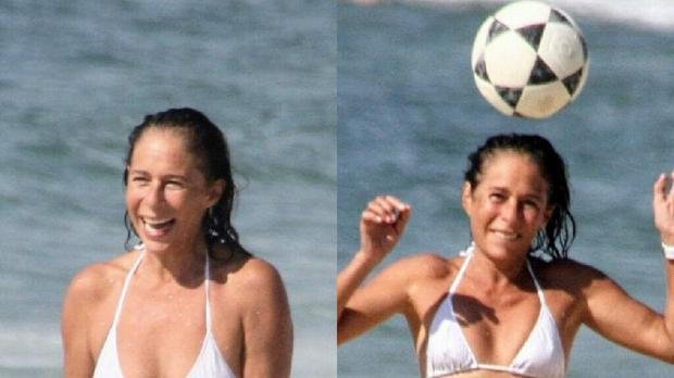 Usando um biquíni branco, a famosa foi fotografada praticando esportes logo após realizar suas aulas de natação em alto-mar. Na ocasião, ela jogou altinha com alguns amigos e mostrou suas habilidades.