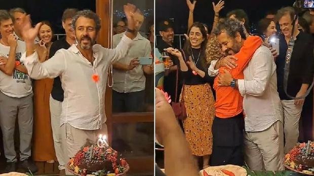 Durante o tocante momento dos parabéns, Marcos Palmeira não apenas comemorou mais um ano de existência, mas também expressou seu sincero agradecimento à sua parceira na vida, Gabriela Gastal, diretora de cinema, com quem está casado desde 2016. O ator aproveitou a oportunidade para homenageá-la, um gesto que foi coroado por um carinhoso beijo trocado entre o casa.