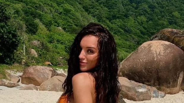 Na ocasião, Rafa Kalimann estava divulgando a coleção de uma marca moda praia. Para isso, ela apareceu toda seduzente usando um biquíni laranja enquanto desfilava suas curvas esbeltas à beira mar.