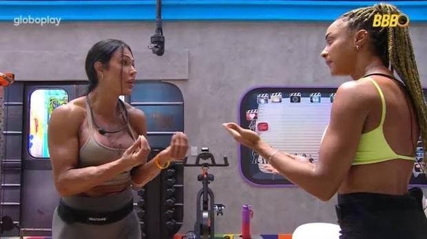 Nas redes sociais, os internautas opinaram sobre a conversa. "Gracyanne se achando a favorita coitada", disse um usuário. "Aline queremos seu posicionamento mulher acorde", aconselhou outro. "A cara da Gracyanne tá igual a do boneco dos Jogos Mortais", brincou uma terceira.