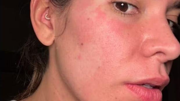 "Fui para Miami, no final de semana passado, e comi um pedaço de croissant e macarrão com glúten. Olha o que aconteceu com a minha pele! Vocês vão ficar muito chocados".