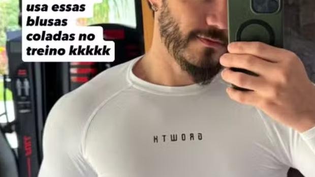 "Me tornei quem eu mais criticava. O cara que usa essas blusas coladas no treino", brincou ele. O visual chamou atenção nas redes pelo shape cada vez mais definido.