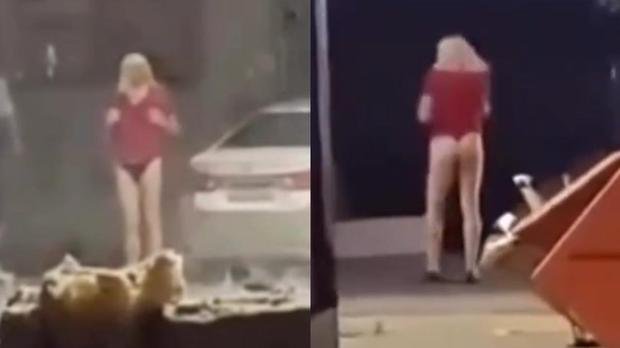 Ele foi flagrado usando uma peruca loira, lingerie vermelha e uma calcinha cavada, caminhando ao lado de um carro no centro da cidade.