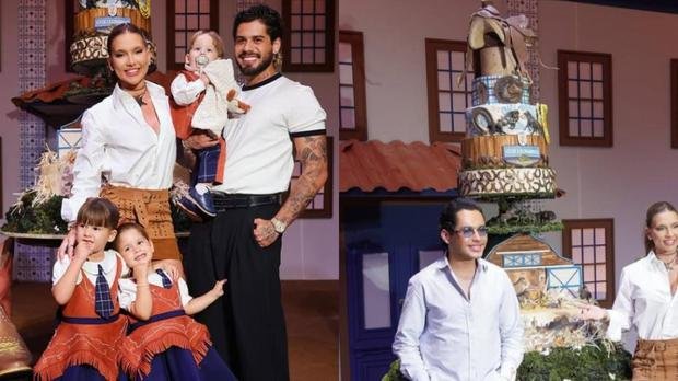 Foi preciso no mínimo seis pessoas apenas para levantar esse gigante, que marcou a celebração como um verdadeiro acontecimento”, detalhou Denilson, explicando a conexão com o tema "Vida na fazenda".