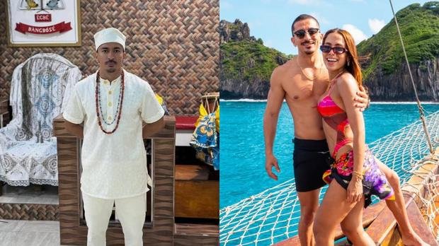 Antes disso, ele já havia sido visto limpando o terreiro com balde e pano, gesto que simboliza humildade e respeito na tradição do Candomblé. As fotos foram publicadas por seu Pai de Santo, Sérgio Pina, com a legenda: "Pai estimulando o coração do filho."