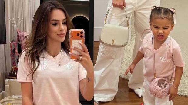 A influenciadora compartilhou nos Stories do Instagram um clique no espelho em que aparece ao lado da filha, ambas usando peças em sintonia: camisa rosa do time santista, calça branca e bolsas nada básicas, apesar do tom descontraído da legenda. "Outubro Rosa", escreveu Bruna na imagem, fazendo referência à campanha de conscientização contra o câncer de mama, enquanto exibiam o look esportivo com um toque fashion.