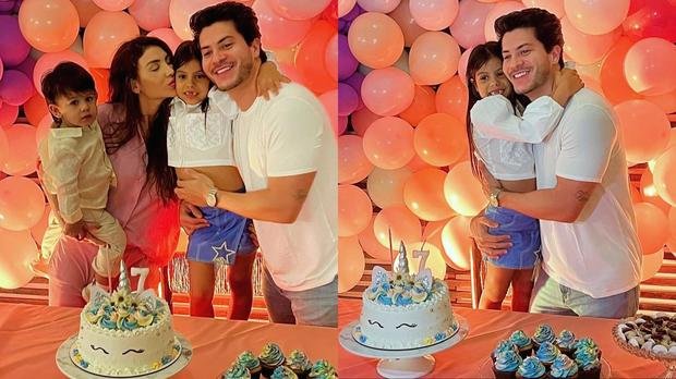 Sophia Cardi, fruto da união entre o ator e cantor Arthur Aguiar e a influenciadora MaÃra Cardi, comemorou seu aniversário de 7 anos em dose dupla neste fim de semana. Após a festa luxuosa realizada pela mãe, MaÃra Cardi, em um zoológico, a garotinha também ganhou uma celebração intimista promovida pelo pai.