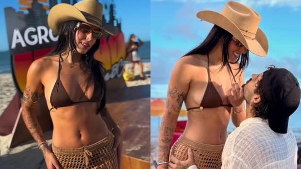 Ana Castela, de 22 anos, encantou seguidores ao aparecer de biquÃni ao lado do namorado Zé Felipe, 27, durante gravação do projeto "AgroPlay Verão in BC" em Balneário Camboriú, Santa Catarina. Nesta terça-feira (25), a artista compartilhou nos Stories momentos românticos com o cantor.