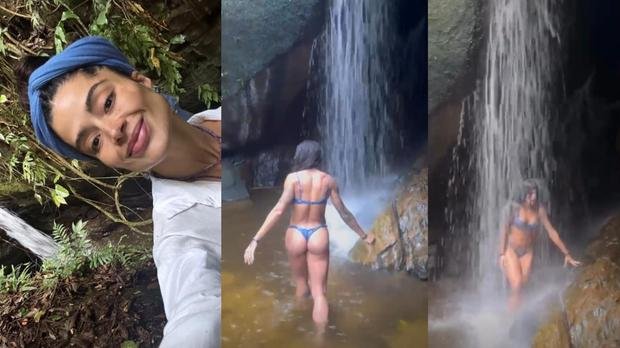 Nos vÃdeos publicados, a artista - conhecida por seus trabalhos em "Os Farofeiros 3" e "Férias Trocadas" - aparece caminhando por uma trilha até alcançar uma cachoeira. Durante o percurso, ela comentou que costuma buscar ambientes naturais sempre que precisa recarregar as energias: "Como é bom estar na natureza da forma mais simples. Ela cura tudo", celebrou.