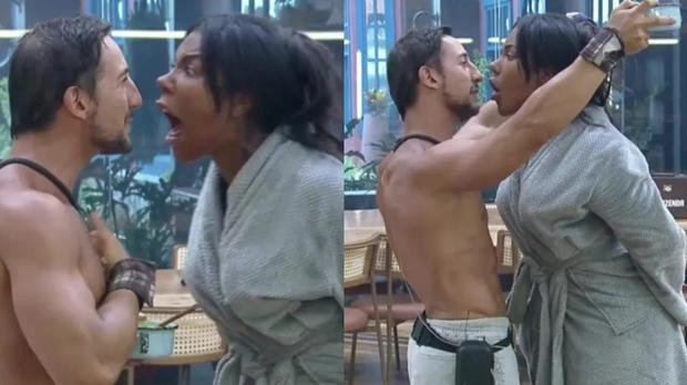 Mesquita tentou se manter calmo, mas continuou ouvindo provocações: “Fala mais Carol, eu não tenho medo de você”. A peoa retrucou de imediato: “E nem eu de você! Vai quebrar minha cara? Vai quebrar minha cara, vai? Seu palhaço. Esroto, macho esroto bobo da corte. Comedor de resto”. Luiz finalizou: “Vai, Carol, fala! Resto? Mulher não é resto”.