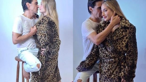 Nas fotos, Bruna aparece usando um roupão com estampa animal print, enquanto André posa descalço, de camiseta branca e calça jeans clara rasgada. Ao compartilhar o material, o ator escreveu: "MAKING OF do ensaio de 'O Dia Seguinte'. Nos vemos em janeiro no Teatro dos 4!".