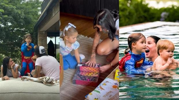 Neste domingo (7/12), Ana Castela aproveitou momentos especiais com os filhos de Zé Felipe e Virginia Fonseca - Maria Alice, Maria Flor e José Leonardo. A boiadeira participou da tarde recebendo os enteados na mansão do namorado e ajudando-os a abrir os presentes que ele trouxe de Portugal.