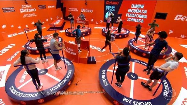 A quinta Prova do LÃder de resistência do "BBB 26" alcançou a marca de seis horas na manhã desta sexta-feira (13). Doze participantes permanecem firmes na plataforma giratória, encarando o desgaste fÃsico e mental em busca da liderança da semana.