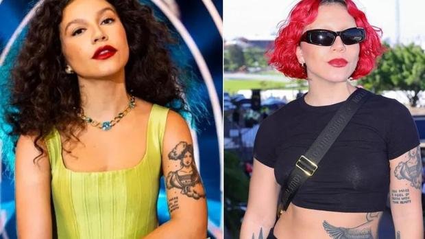 Nas imagens divulgadas, a cantora está de bermuda, cropped preto e deixando totalmente visÃvel as tatuagens dos braços e barriga.