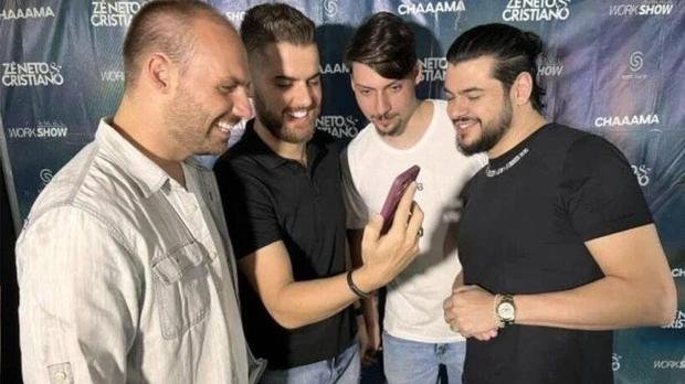 A dupla sertaneja Zé Neto e Cristiano se encontrou no último fim de semana com os filhos do Presidente Bolsonaro, Eduardo e Renan, em Brasília, onde se apresentaram no último fim de semana. Depois de terem julgado o cancelamento que sofreram recentemente, após a polêmica dos cachês sertanejos, os artistas posaram com dois dos quatro herdeiros do Chefe do Executivo. Eduardo Bolsonaro foi quem publicou o registro em suas redes sociais e fez mistério sobre o vídeo que eles estariam vendo.