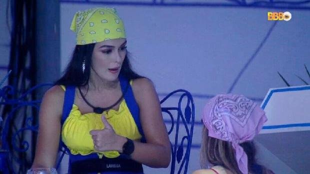 'Eu converso com ele normal, ontem eu falei pra fazer café. Mas se tratando de vocês não quero e pronto. [...] Ah, vai tomar no cu, ele é sem respeito e por isso que vai sair. Não vou deixar ele me prejudicar', soltou Larissa.