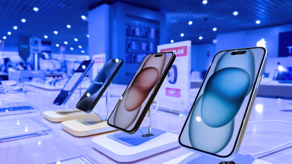 Celulares dentro de uma loja. – Créditos: depositphotos.com / ifeelstock