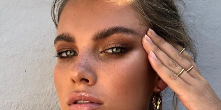 - Olhos Quentes e Iluminados: Aposte em sombras de marrom claro e dourado. Para o contorno, escolha um bronzer cremoso para definir suavemente as maçãs do rosto.