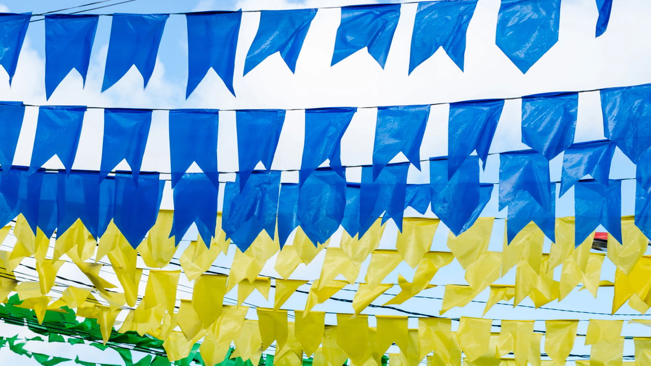 Quais roupas e acessórios combinam com uma festa junina das cores?