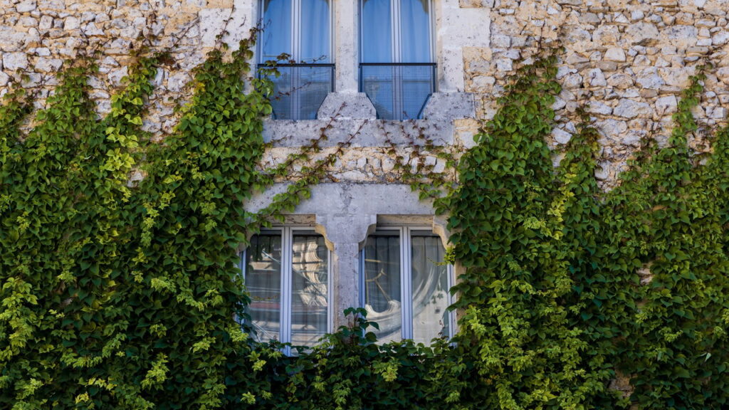 Plantas trepadeiras, como a Hera e o Jasmim, quando colocadas estrategicamente nas paredes exteriores ou pérgulas, podem criar sombra natural, reduzindo a temperatura da superfície externa da casa.