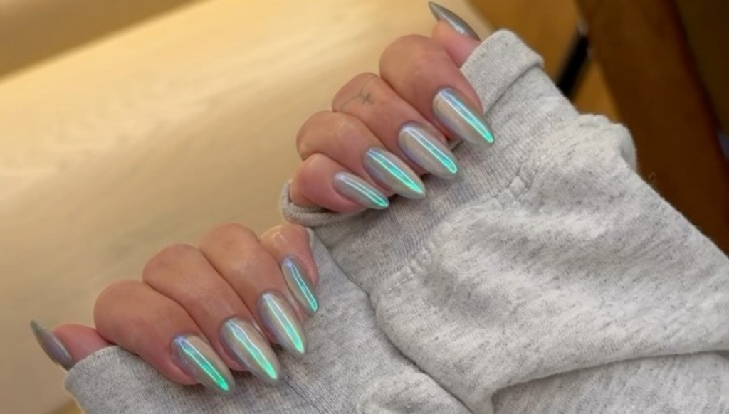 O pó cromado virou sinônimo de sofisticação e modernidade nas unhas. Com um efeito espelhado e cintilante, ele transforma qualquer esmaltação básica em algo digno de passarela. O reflexo metálico chama atenção de forma sutil e elegante, ideal para quem gosta de inovar sem exageros.