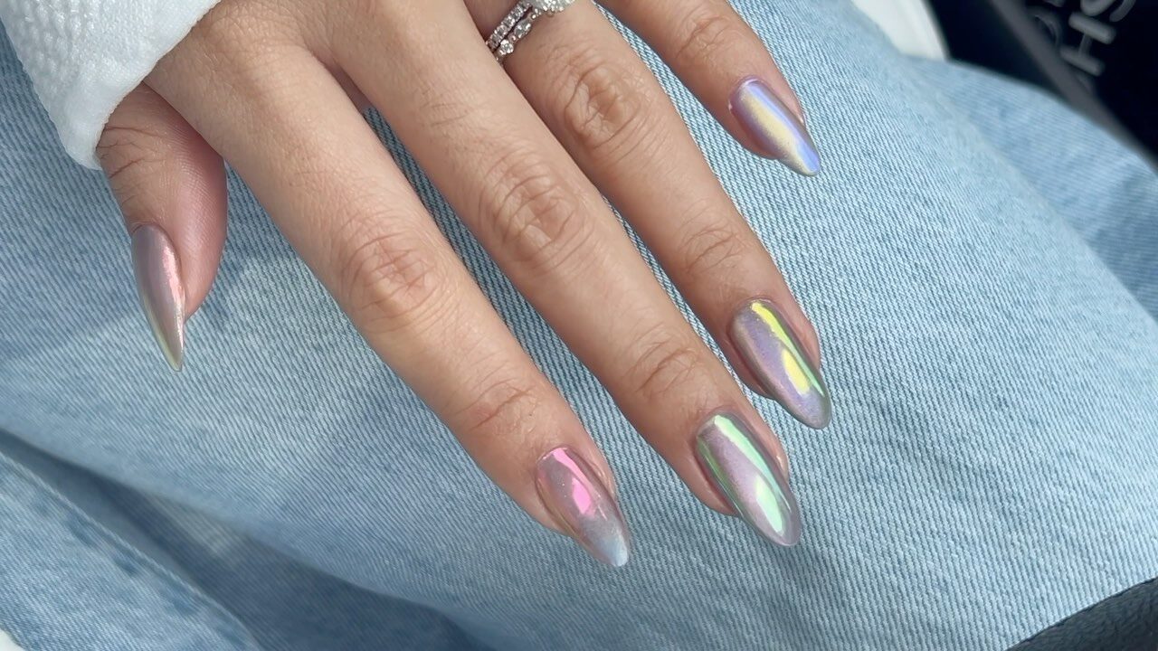 O pó cromado virou sinônimo de sofisticação e modernidade nas unhas. Com um efeito espelhado e cintilante, ele transforma qualquer esmaltação básica em algo digno de passarela. O reflexo metálico chama atenção de forma sutil e elegante, ideal para quem gosta de inovar sem exageros.