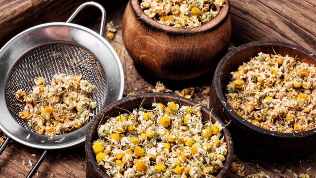 A camomila é uma das ervas mais utilizadas ao redor do mundo para promover o sono tranquilo. Seus antioxidantes, como a apigenina, se ligam a receptores cerebrais que induzem o relaxamento leve e gradual.