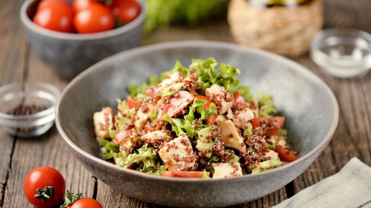 Como a salada de quinoa pode ser utilizada como acompanhamento versátil?