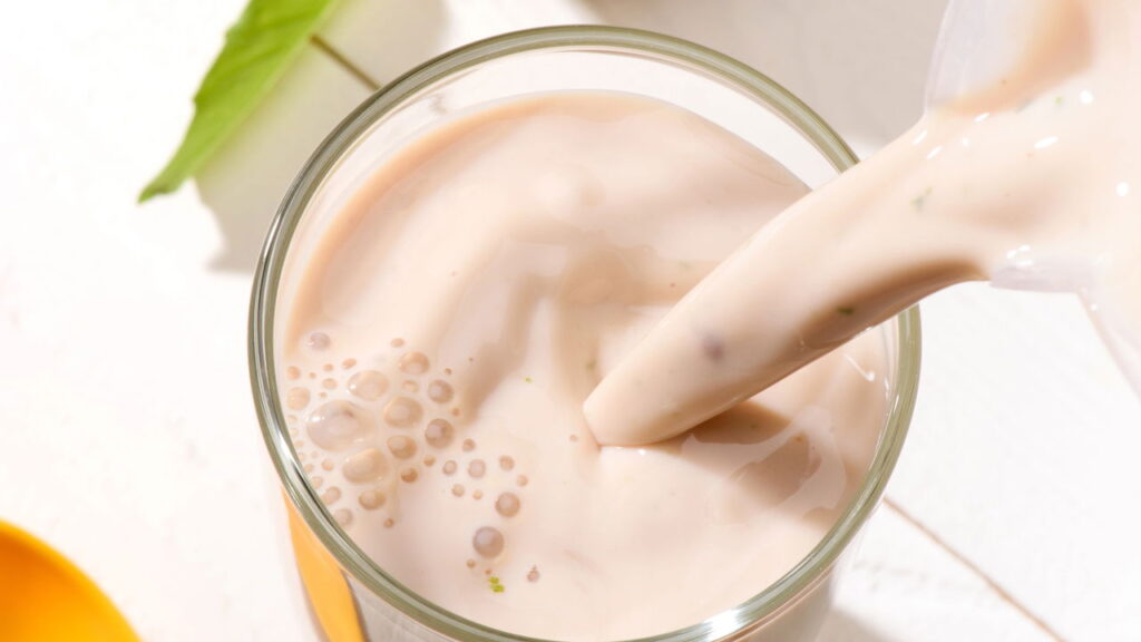 Além disso, o leite melhora a textura e o sabor do shake, tornando-o mais cremoso. Para versões ainda mais nutritivas, vale apostar em leites vegetais fortificados com cálcio e vitamina B12.