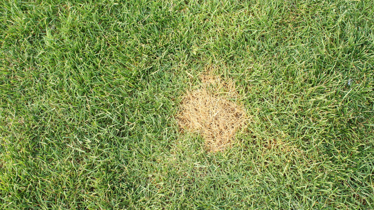 Entre os problemas mais frequentes está o Dollar Spot, que causa pequenas manchas marrons circulares e se espalha facilmente pelo solo. Já o Fio Vermelho costuma ser identificado por filamentos avermelhados ou rosados nas folhas.