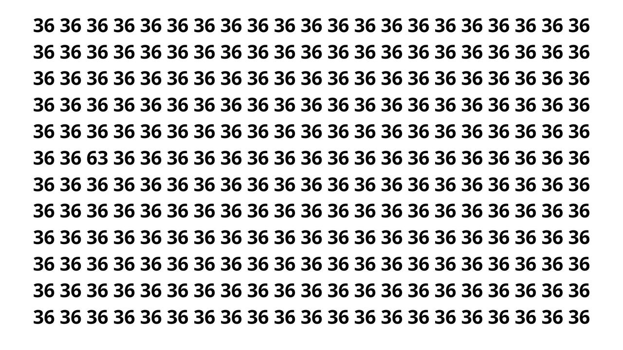 Chegou o momento da verdade! O número 63 estava escondido na sexta linha, terceira coluna da imagem. Por estar cercado de vários “36”, a inversão passava despercebida em uma primeira olhada.