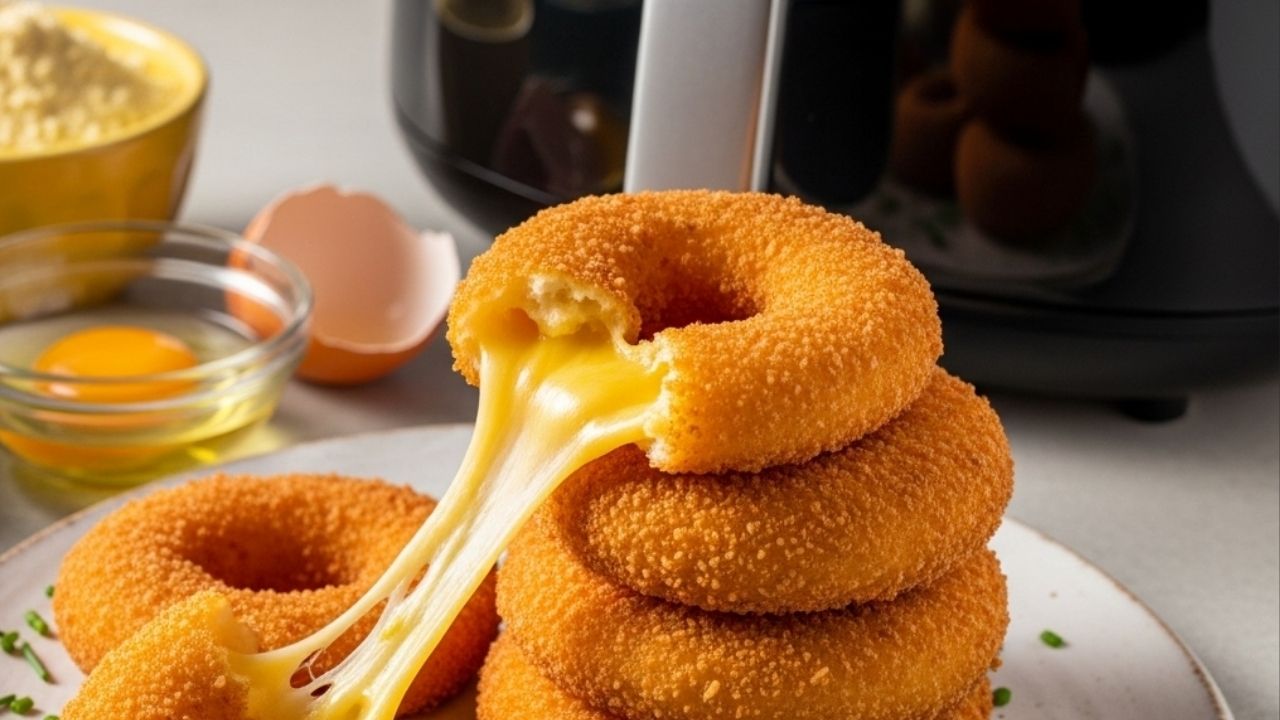 Os anéis de queijo sem glúten ficam crocantes por fora, derretem por dentro e são feitos com poucos ingredientes.