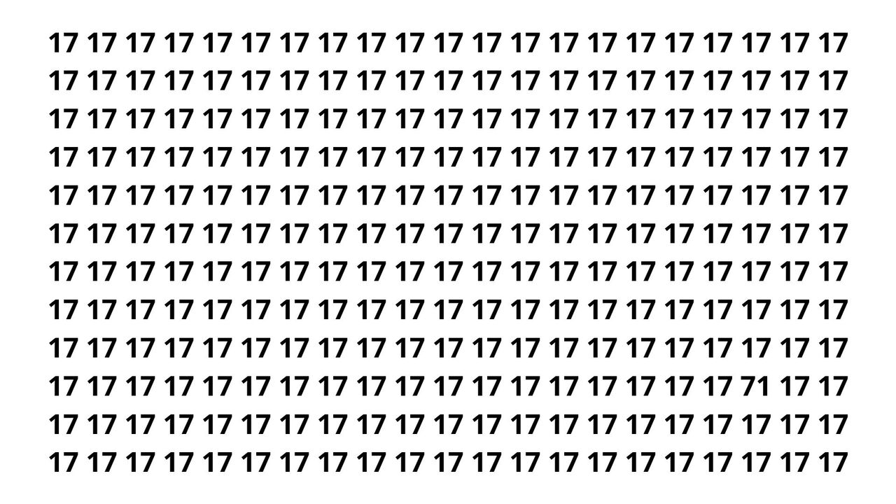 O desafio é simples no papel, mas exige concentração máxima. Você terá exatamente 9 segundos para localizar o número 71 escondido entre dezenas de 17. Está pronto para testar sua visão e foco?
