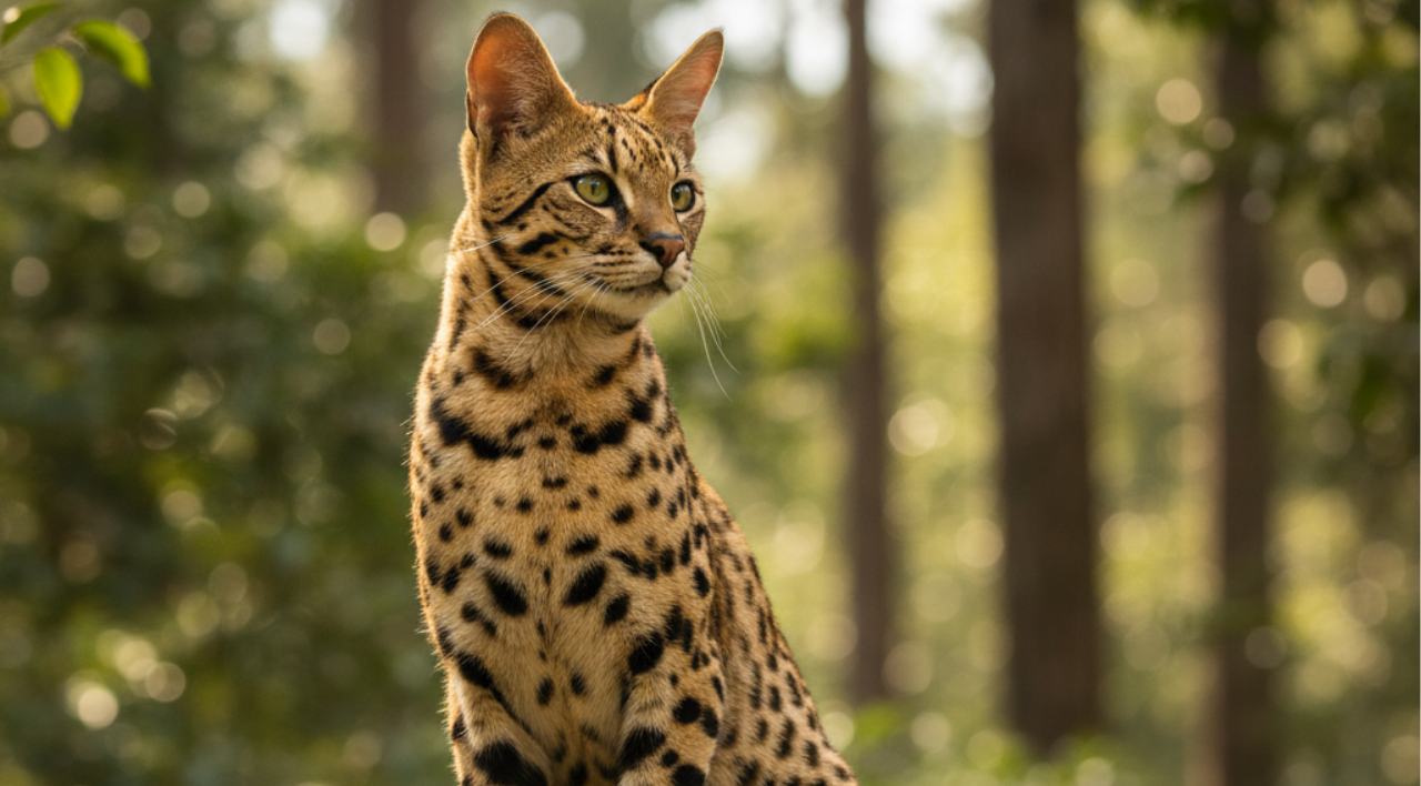 Criado a partir do cruzamento entre gatos domésticos e o serval africano, o Savannah é valorizado por seu porte e temperamento.