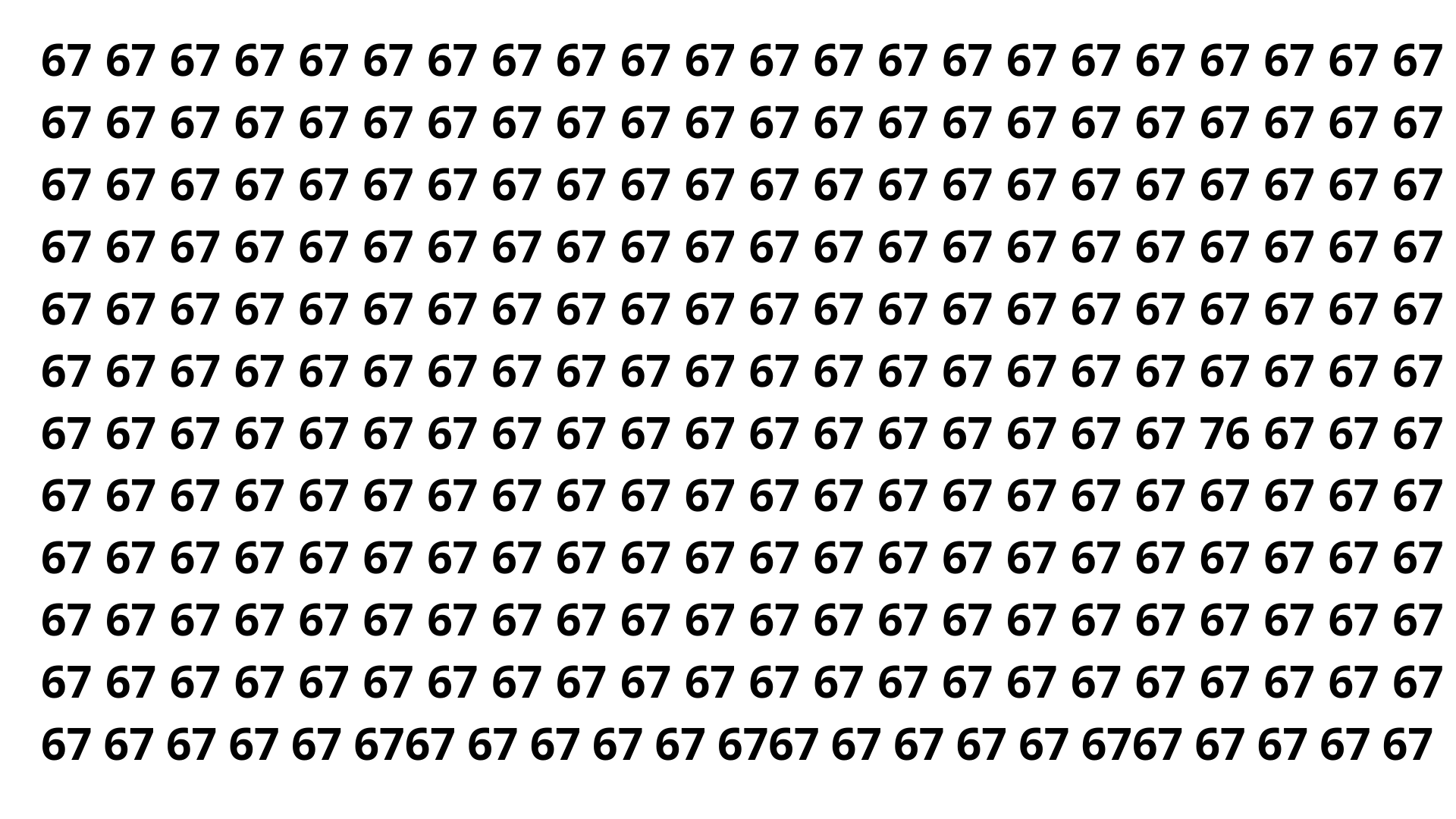 O jogo é simples: você precisa encontrar o número 76 escondido entre uma sequência interminável de 67. Mas cuidado: a semelhança visual pode enganar facilmente seus olhos.