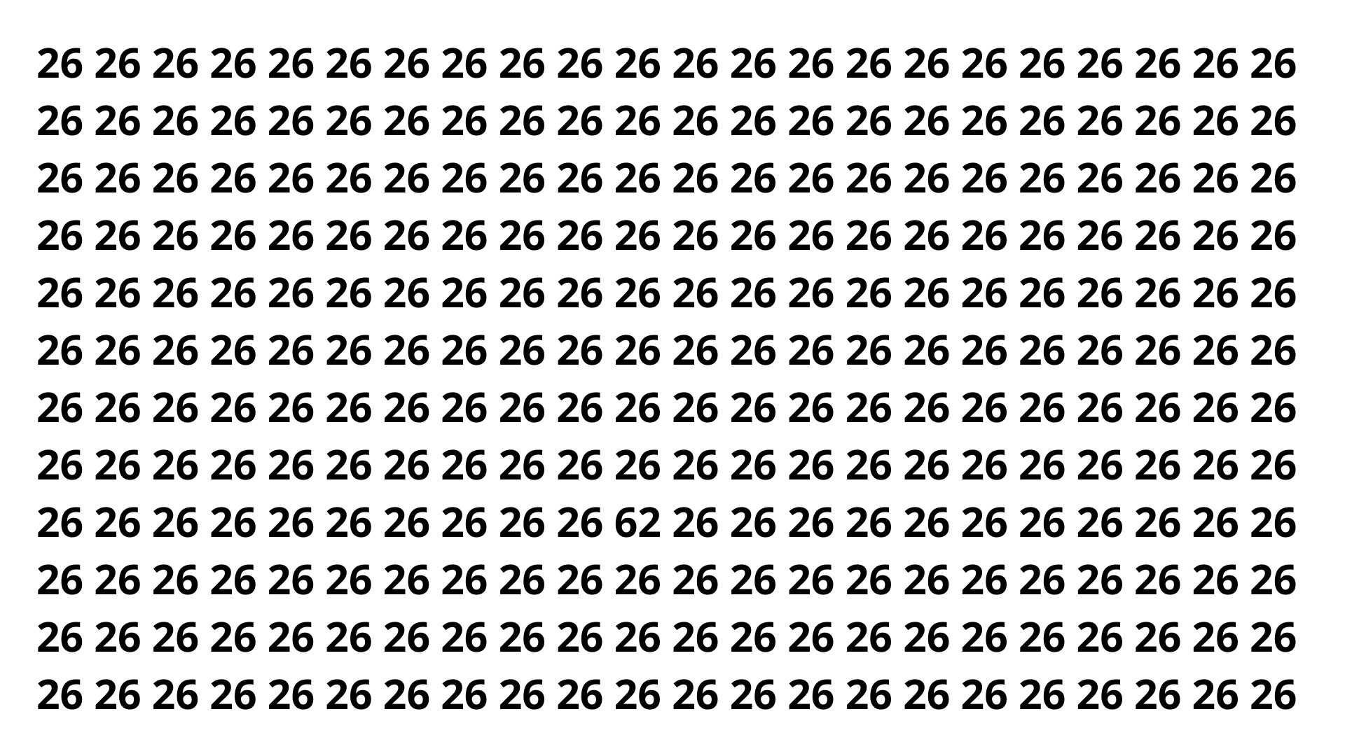 Aqui está o desafio: em meio a uma sequência de números 26, há um único 62 escondido. Seu objetivo é encontrá-lo antes que o cronômetro chegue ao fim.