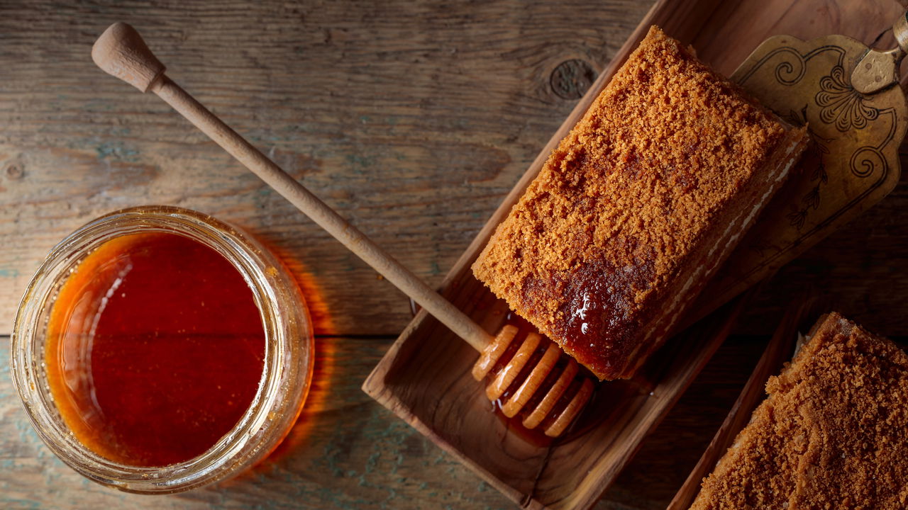 O mel não apenas adoça, mas também atua como um agente natural de umidade, mantendo a massa fofinha por mais tempo.