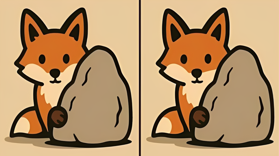 Agora é hora de colocar sua mente à prova. Diante de você, estão duas imagens lado a lado: uma raposa descansando atrás de uma pedra. Seu objetivo é simples, mas desafiador: descubra as diferenças escondidas.
