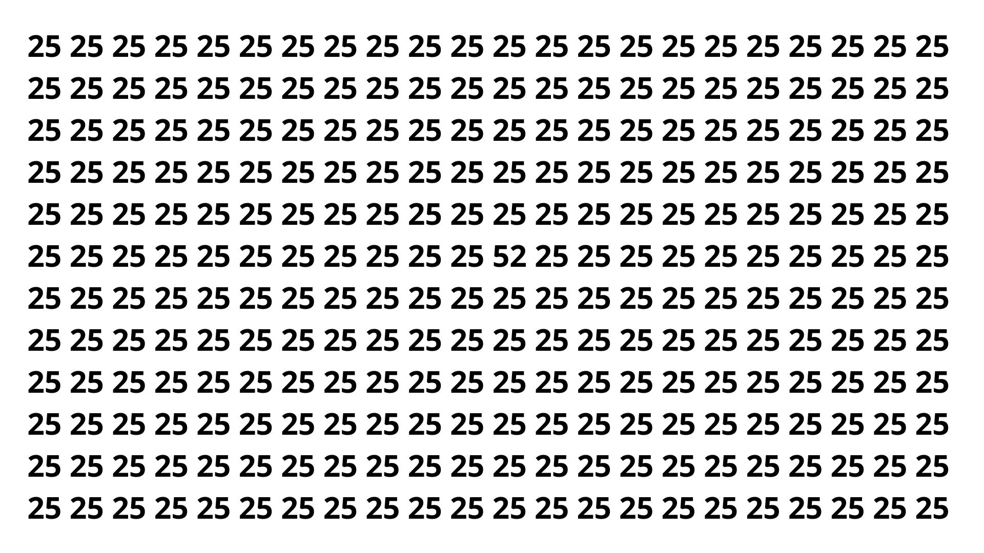 Seu desafio é simples apenas no papel: em meio a vários números “25”, existe um “52” que tenta se camuflar. Mas cuidado, o tempo é curto e os olhos podem enganar.