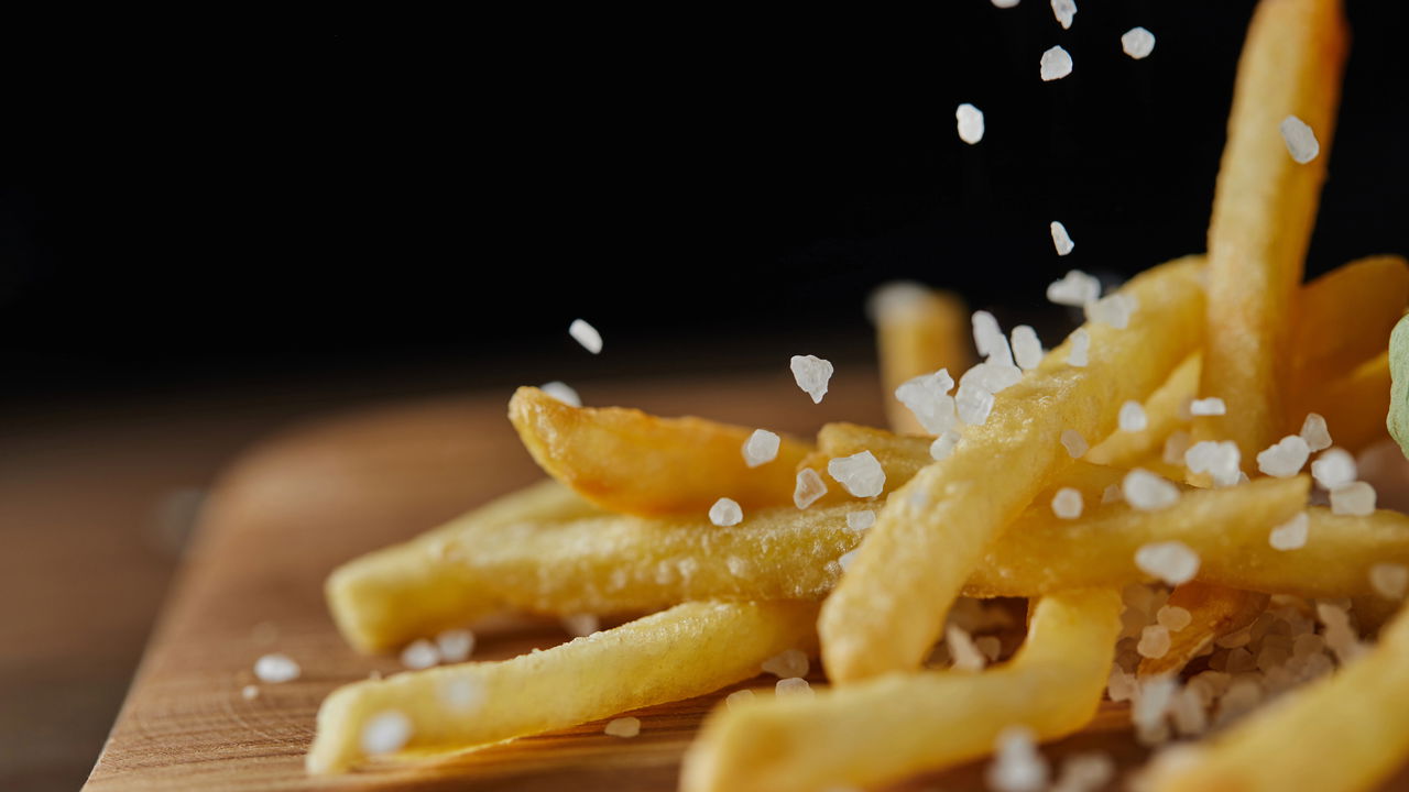 Adicionar vinagre na etapa de preparo ajuda a controlar o amido e a oleosidade, resultando em batatas crocantes por fora e macias por dentro.