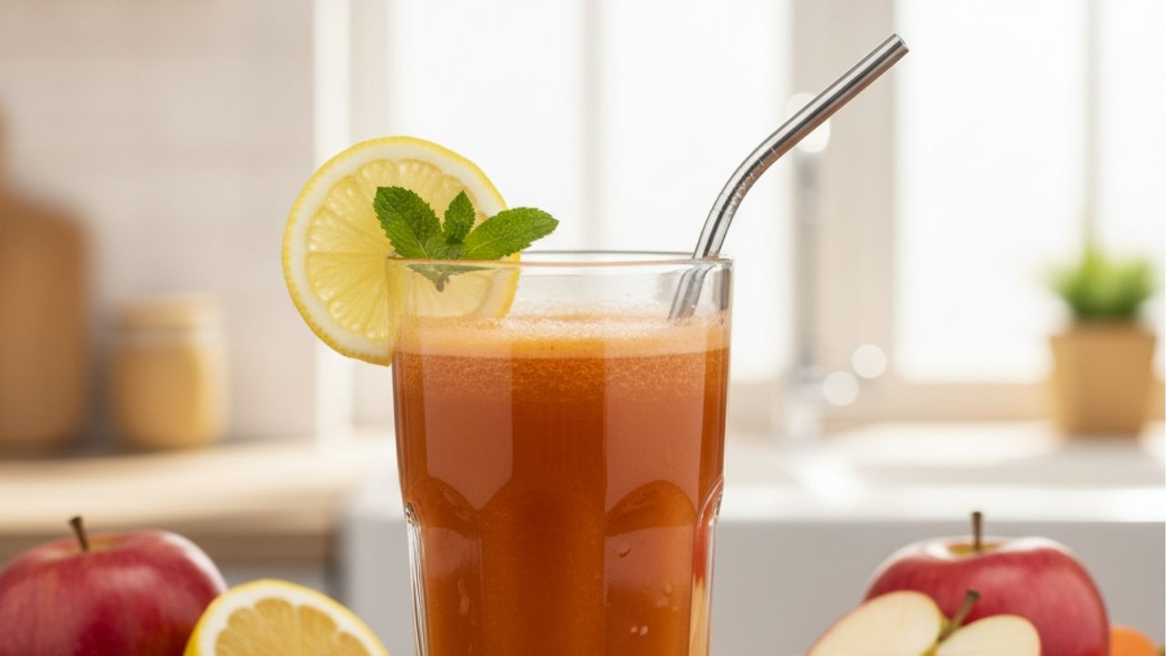 O suco de cenoura com maçã e limão combina nutrientes poderosos para a saúde da pele e do organismo. Ao consumir essa bebida, você pode intensificar o brilho e vitalidade cutânea.