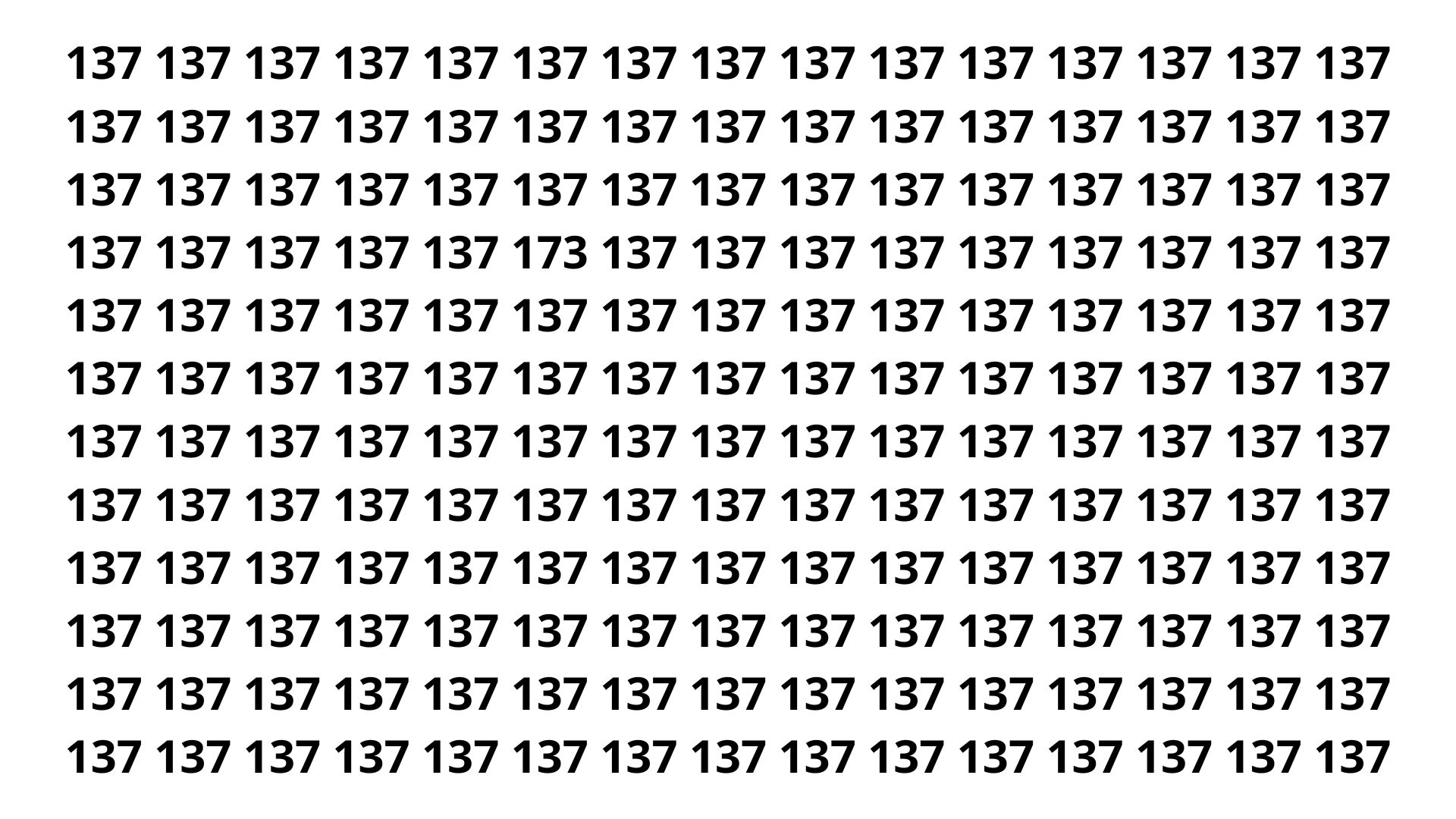 Chegou a hora da verdade. Entre dezenas de números 137, há um único e sorrateiro 173 escondido. Poucas pessoas conseguem localizá-lo rapidamente — apenas 3 em cada 20 participantes acertam no tempo limite.