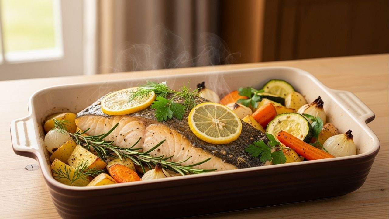 Uma das vantagens do peixe assado para a família é que ele combina com acompanhamentos simples e nutritivos, tornando a refeição equilibrada. A preparação também permite assar tudo junto em uma travessa única.