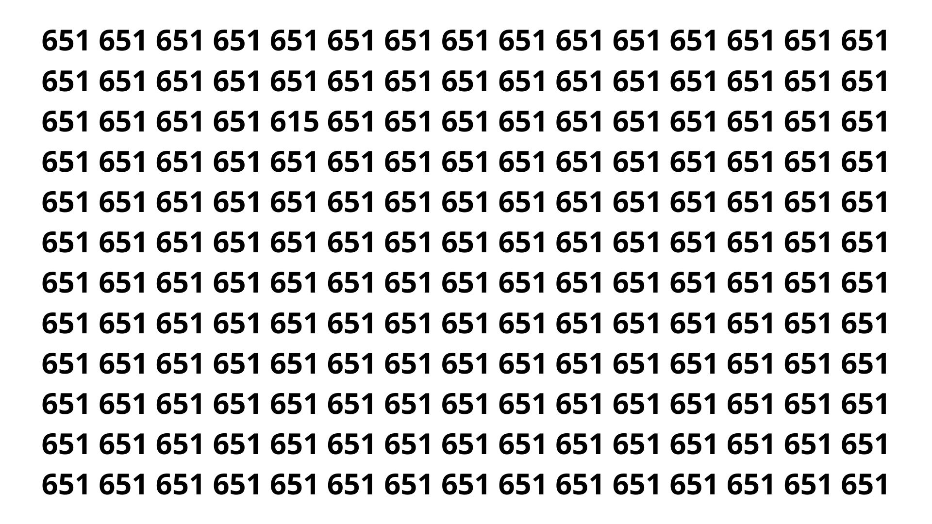 - Encontre o número 615 entre dezenas de 651.