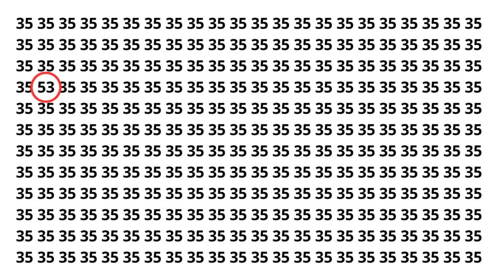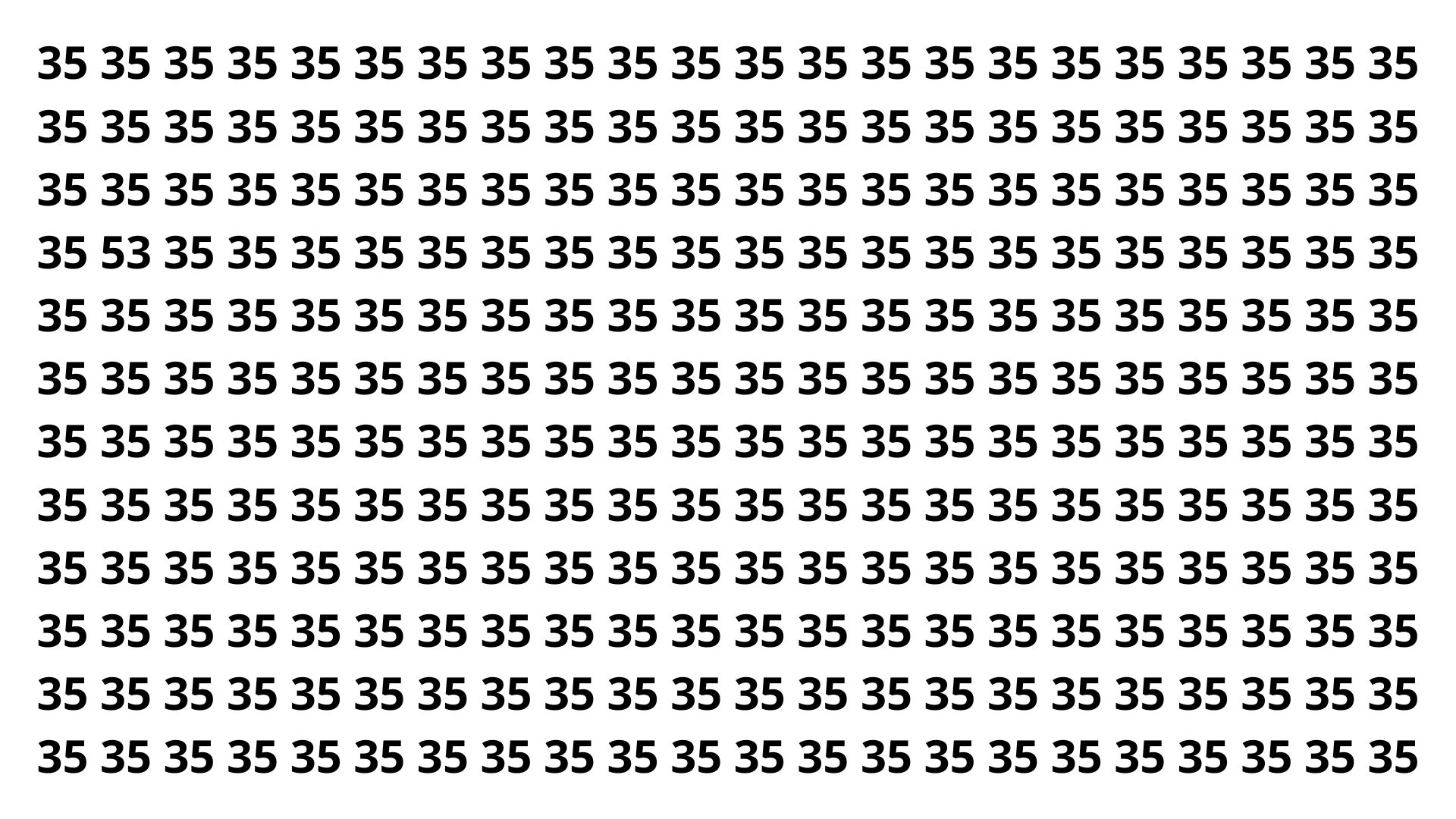 Este desafio é direto, mas extremamente traiçoeiro. Em meio a uma parede de números 35, há um único 53 escondido. Os números são tão parecidos que é fácil se confundir — e é justamente aí que mora a diversão.