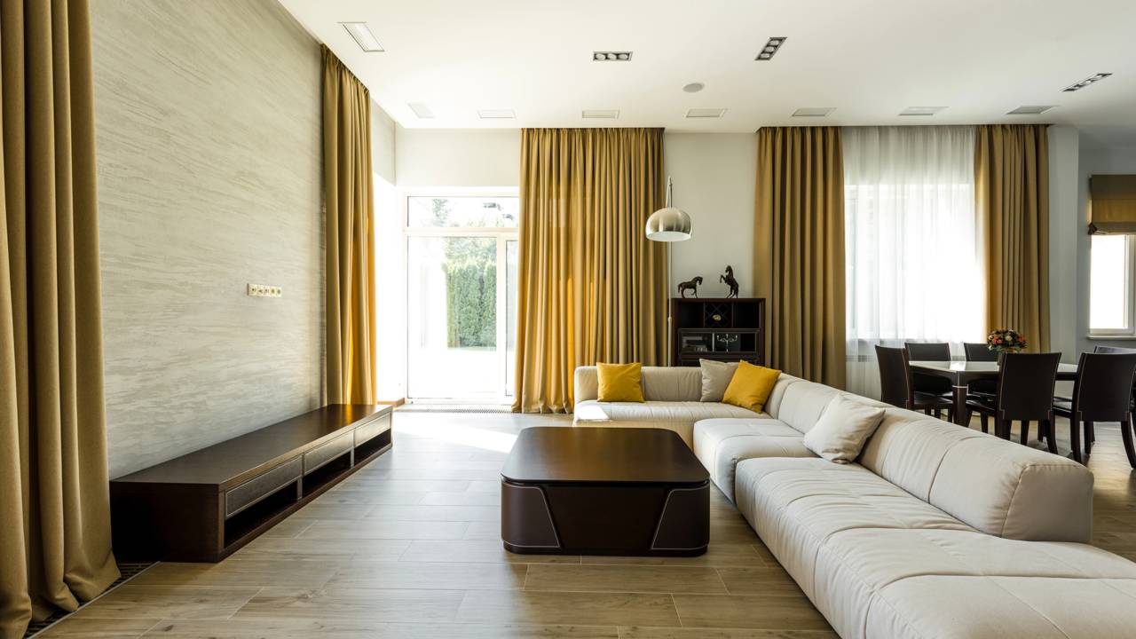 Harmonia entre luz, móveis e cortinas deixa a casa mais aconchegante — Créditos: depositphotos.com / Y-Boychenko